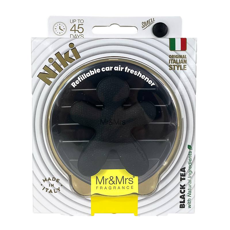 Osvježivač Niki izvadite iz folije i na kromiran (fiksni dio) pričvrstite refil s mirisom. Pomoću univerzalne hvataljke koja se nalazi na stražnjoj strani, osvježivač jednostavno pričvrstite na otvor za ventilaciju. Prikladno za sve tipove vozila (moguće horizontalno ili okomito postavljanje).
