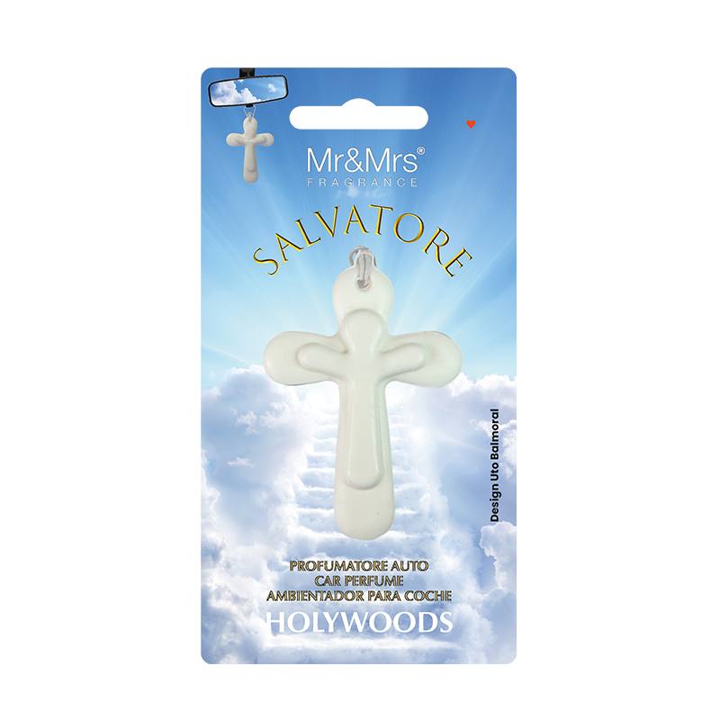Salvatore je prvi i jedini osvježivač zraka za automobil u obliku križa. Objesite li ga na retrovizor, osigurat ćete rajski i efektan miris. Sastav je bez alkohola s izrazito jakim i dugotrajnim mirisom. Na poleđini proizvoda nalazi se poruka "Božja ljubav".